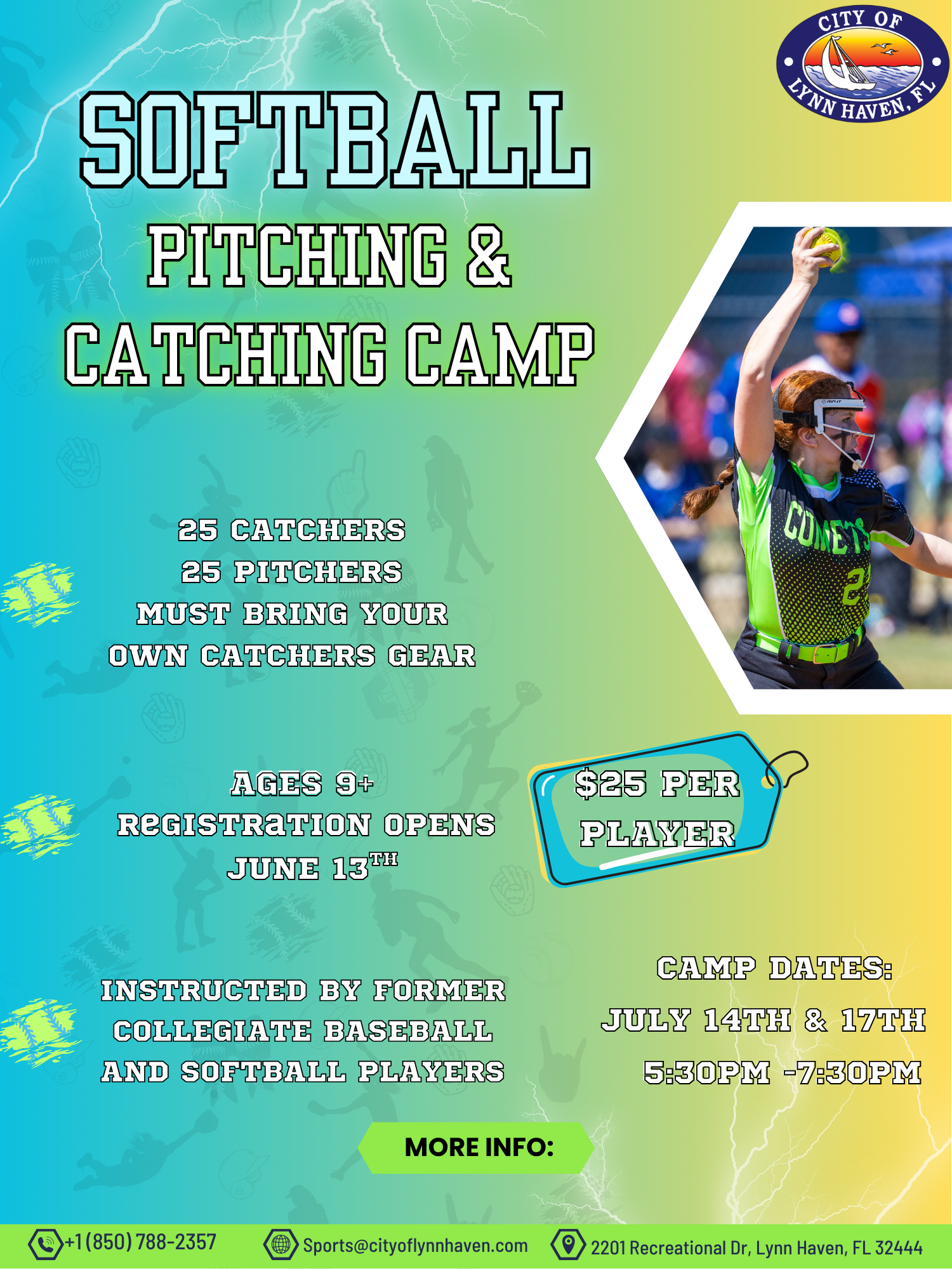 Come join our Softball Pitching Camp for girls ages 9 and up! This is a great opportunity to improve your pitching skills, build confidence, and learn from experienced coaches—including former college baseball and softball players. The camp will take place on July 14th and 17th from 5:30 PM to 7:30 PM. All skill levels are welcome—let’s take your game to the next level!